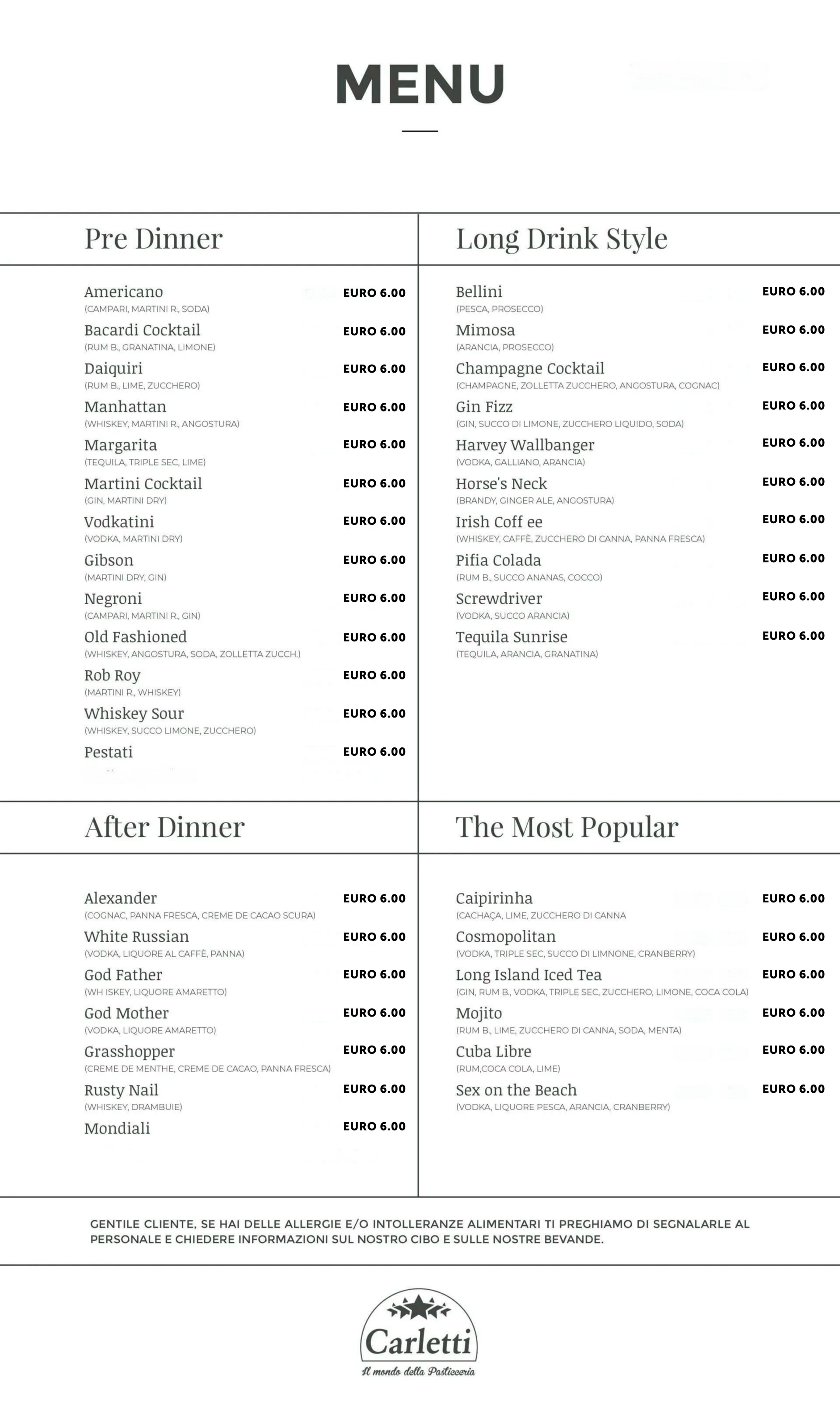 vi presenta un menu ricco di specialità e squisitezze preparate con la maestria e l'esperienza dei nostri collaboratori.